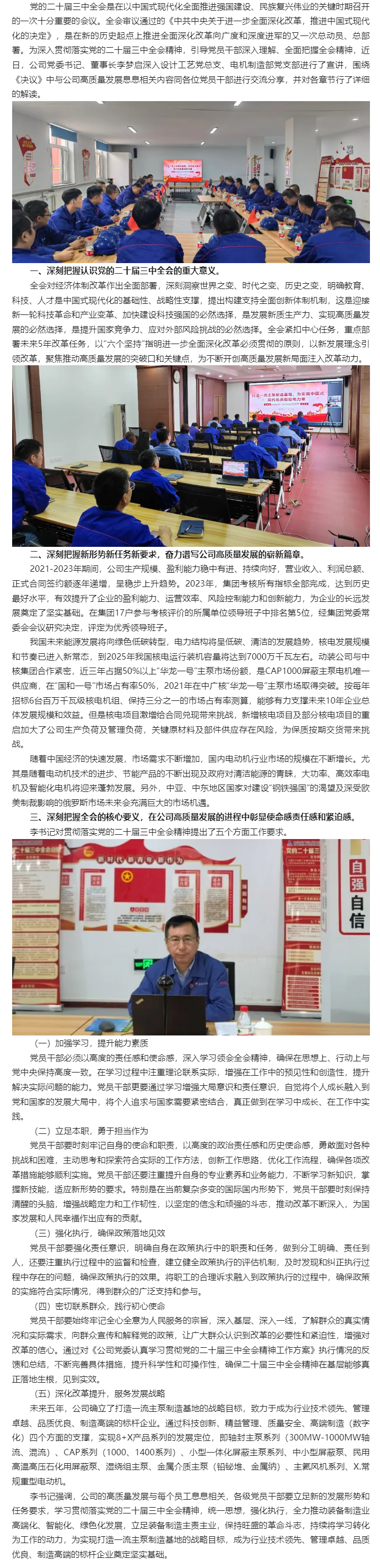 學習全會精神 | 打造一流主泵制造基地,為實現中國式現代化貢獻哈電力量