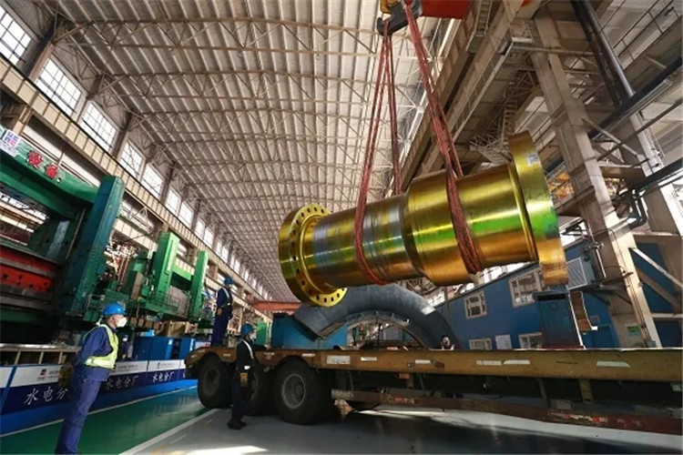 哈電集團有序復工復產,操作者正在吊運兩河口4號機主軸。