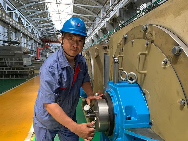 該同志在2021年參與部門新產品電機裝配時,由于電機的設計轉速、容量等參數與以往電機有很大的不同,他在裝配前通過熟悉工藝文件、與工藝設計人員技術交底,明確關鍵工序及重點部位,做好各項準備工作,既提高生產效率同時又提升試驗成功保險系數。2021年6月,80MW風洞電機在某現場運行時出現軸向串動大的問題,他受公司指派前往正值新冠疫情形勢嚴峻的沈陽,到達現場后經仔細分析,憑借豐富的實踐經驗,將工藝頂軸裝置拆卸后更換位置重新裝配,僅用一天時間就解決了用戶燃眉之急,獲得用戶的充分肯定。