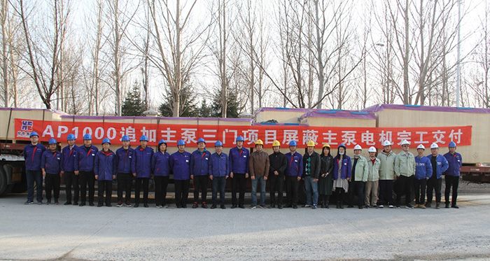 2021年3月31日,在上海核工程研究設計院有限公司(以下簡稱上海核工院)及沈陽鼓風機核電泵業有限公司(以下簡稱沈鼓核電)的現場見證下,哈爾濱電氣動力裝備有限公司(以下簡稱哈電動裝)承制的國產化AP1000追加主泵屏蔽電機三門項目電機順利發運沈鼓核電,后續將開展機組裝配及試驗工作。