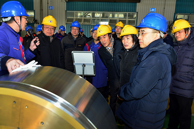 中國能建集團董事長汪建平一行參觀哈電集團動裝公司核電基地